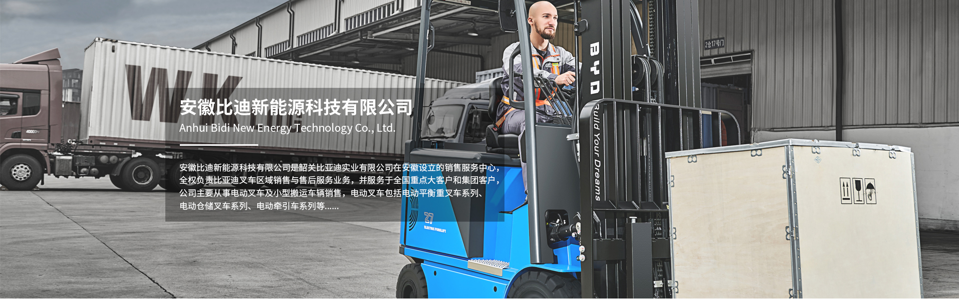 安徽比迪新能源科技有限公司是韶關比亞迪實業有限公司在安徽設立的銷售服務中心,全權負責比亞迪叉車區域銷售與售后服務業務,并服務于重點大客戶和集團客戶,目前已經形成成熟穩定的銷售服務團隊。安徽比迪堅持奉行“客戶導向,誠信為本、信譽為上”的宗旨,注重企業品牌建設和質量誠信建設。公司主要從事電動叉車及小型搬運車輛銷售,電動叉車包括電動平衡重叉車系列、電動倉儲叉車系列、電動牽引車系列等。電動叉車應用領域非常...